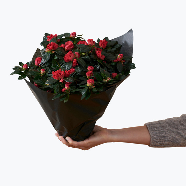 Nydelig rød Asalea ,- en av våre mest populære juleplanter, et godt valg til både gammel og ung! Potten som kan velges er pen og diskret. Den er miljøvennlig og produsert av nedbrytbare gjenbruksmaterialer. Vis mer